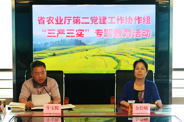 为贯彻落实《广东省农业厅开展“三严三实”专题教育工作方案》的部署,充分发挥党建协作组在“三严三实”专题教育活动中的作用,6月3日下午,厅党组成员、副厅长牛宝俊同志主持召开了省农业厅第二党建协作组“三严三实”专题教育活动。厅党组成员、巡视员、直属机关党委书记余俭娥同志,厅直属机关党委专职副书记、党委办主任刘益明同志出席教育活动。厅政策法规处、农机化办全体党员干部,省农业环保与农村能源总站、省农机试验鉴定站、省农机化技术推广总站、省现代农业装备研究所等党支部领导干部共26名党员同志参加了活动。