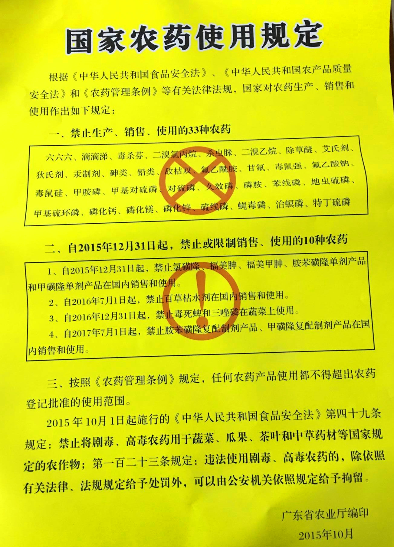 中央电视台12月6日《每周质量报告》报道了广州市增城、从化两区散户菜农涉嫌使用违禁农药事件。省领导高度重视,作出明确指示和要求。省农业厅党组书记、厅长郑伟仪同志立即作出部署。12月11日,省农业厅下发通知,决定从2015年12月中旬到2016年3月份在全省组织开展农药兽药执法检查专项行动,组织4个督查组赴广州等8市对农药兽药执法检查进行重点督查。进一步加强农药、兽药等农资监管使用和监督执法,从源头上保障人民群众“舌尖上的安全”。