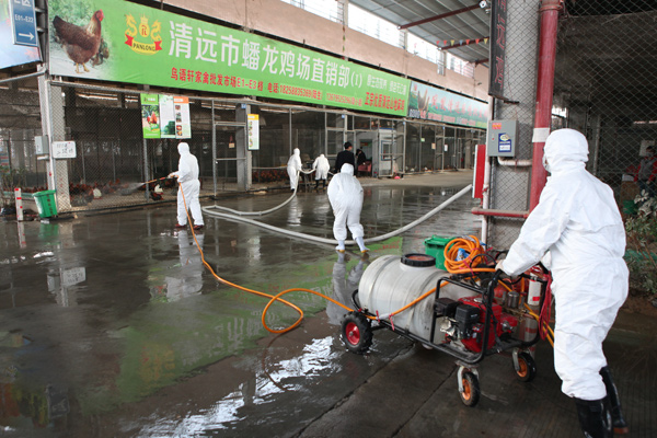 冬春季节是H5N6、H7N9等多种流感及重大动物疫病的高发期,加上双节期间动物及其产品调运频繁,我省动物疫病防控形势严峻。为切实加强源头净化,有效消除传染源,切断病毒传播途径,保障畜禽产品安全供应和人民群众身体健康,广东省农业厅决定1月13日在全省统一组织开展“动物防疫消毒灭原日”活动,推动消毒措施全面落实。13日上午,省农业厅副厅长、省畜牧兽医局局长郑惠典深入到清新区鸟语轩家禽批发市场和清城区天农公司清远鸡屠宰场现场指导并参与消毒灭原活动。
