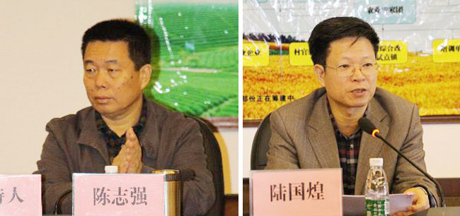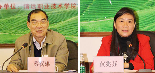 清远市委副书记黄兆芬(右一)与省农业厅巡视员、省农学会会长蔡汉雄(左二)、