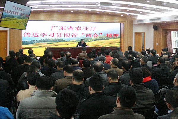 2月1日上午,省农业厅召开全厅干部大会,传达学习贯彻省“两会”精神。厅党组书记、厅长郑伟仪主持召开会议,指出,要深入学习领会省“两会”精神,把贯彻落实“两会”精神与当前农业农村经济各项重点工作紧密结合,推进广东特色农业现代化加快发展。