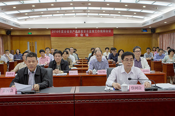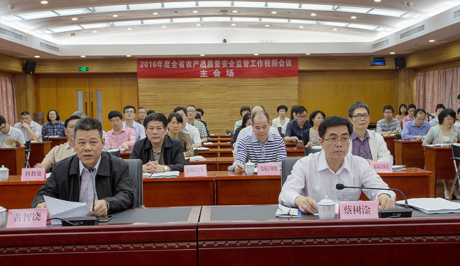 4月8日上午,广东省农业厅召开2016年度全省农产品质量安全监管工作视频会议,总结分析“十二五”时期全省农产品质量安全监管工作,研究部署2016年及“十三五”时期重点工作任务。厅党组成员、总畜牧兽医师蔡树淦同志出席会议并讲话。梅州、惠州、江门市和高明区农业局做了交流发言,厅有关处室、单位根据职责分工提出了工作意见。厅各有关处室、单位负责人,各地级以上市、县(市、区)农业行政主管部门分管领导、有关科(处)、股室负责人参加了会议。