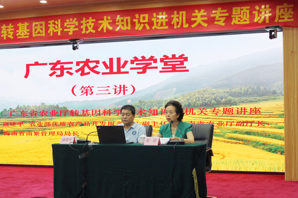 讲座邀请了农业部优质农产品开发服务中心副主任、海南省农业厅副厅长、海南省南繁管理局局长,曾任农业部科技教育司转基因安全管理与知识产权处处长的寇建平同志讲授“转基因安全管理及几个热点问题”专题。他从转基因产品安全性、转基因事实澄清和转基因研发及监管等三方面,以图文并茂的方式、通俗易懂的语言,生动形象的案例,讲授了转基因技术发展历程、安全评价体系、研发过程以及监管与执法情况,并从科学层面回答了公众关注的相关转基因热点和焦点问题,提高了全省农业系统干部的转基因生物技术认知水平,传递科学、权威、客观的信息,普及转基因科学技术知识及相关产品。讲座风趣幽默,反响热烈,收到预期效果。