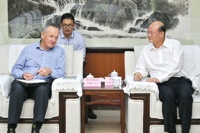 8月16日上午,广东省农业厅副厅长黄斌民会见了到访的澳大利亚西澳州发展部农经拓展特使罗伯特·迪兰一行。黄斌民副厅长对特使一行的到来表示热烈的欢迎,简要介绍了广东省、广东农业发展概况及我省与澳大利亚的农产品进出口贸易简况。罗伯特·迪兰特使介绍了西澳州的农业发展情况,并就加强双方农产品质量安全、食品可追溯技术、农产品贸易等方面的交流合作提出了热切希望。双方表示将进一步加强互动,密切合作,为下一步双方农业合作打下基础。厅交流合作处、农产品质量安全监管处、农产品质量安全中心负责人陪同参加了会见。
