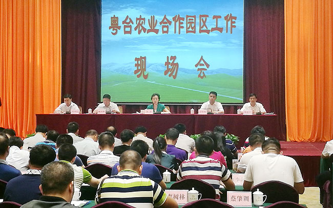 8月25日,粤台农业合作园区现场会在韶关市翁源县召开。会议代表参观考察了韶关粤台农业合作试验区翁源核心区的项目建设情况,听取了翁源县领导的典型发言、各园区负责人的工作交流汇报、特邀嘉宾--省海峡两岸交流促进会农业委员会会长关于台湾现代农业发展及协会工作情况介绍。会议由省农业厅交流合作处处长杨志平主持,韶关市副市长彭裕殿到会致欢迎词,省农业厅副厅长程萍出席会议并讲话。