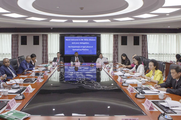 9月9日下午,广东省农业厅程萍副厅长会见了到访的南非夸纳省政府代表团。程萍副厅长对西和乐·齐卡拉拉执行委员一行的到来表示热烈的欢迎,简要介绍了广东省农业发展情况,并根据朱小丹省长与夸纳省签署的合作备忘录,进一步探讨今后双方农业合作的方向。南非夸纳省农业和农村发展厅厅长席飞伟·菲利克斯介绍了当地农业发展情况,并就加强双方科技人员交流、农产品加工流通、人才培养、农产品贸易等方面的交流合作提出了热切希望。