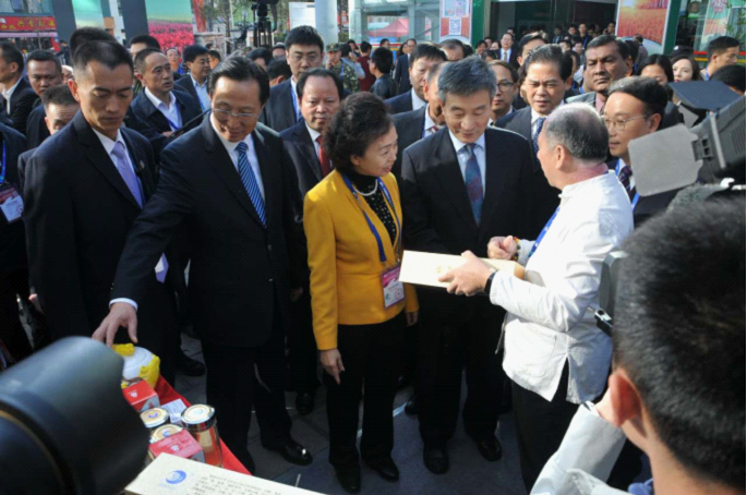 第14届中国国际农产品交易会于11月5日在云南省昆明市昆明国际会展中心拉开帷幕。会展中心室外约1万平方米的活动区内“广东名牌农产品”一条街占据了近1千平方米的场地。