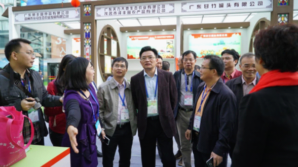 广东省农业厅副厅长郑惠典在“广东名牌农产品”一条街与参展企业交流