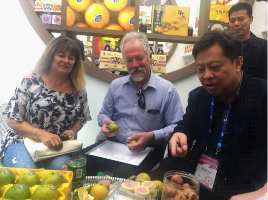 外籍采购商在广东展区挑选德庆贡柑