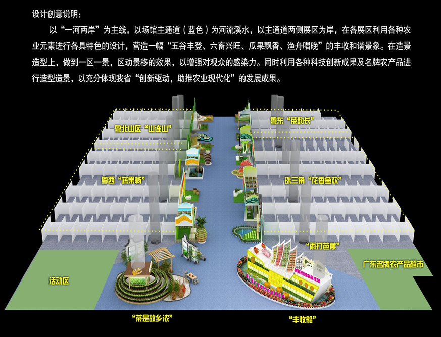 省农业厅副厅长程萍:展览总体布局分为省综合展示区、省内展区、外省及粤台农业合作展区。其中省内展区包括:地市展区(粤东、粤西、粤北、珠三角展区)、省直单位展区(省妇联、团省委展区)、农业社会化服务体系展区(科技创新、农业金融服务、休闲农业、互联网展区)和特色农业专业展区(粮油、花卉、果蔬、名茶、畜牧、农产品地理标志、农业装备展区)。外省展区邀请泛珠三角省区和对口援助的新疆、西藏地区组织企业参展。本届农博会还专门设置了粤台农业合作展区。