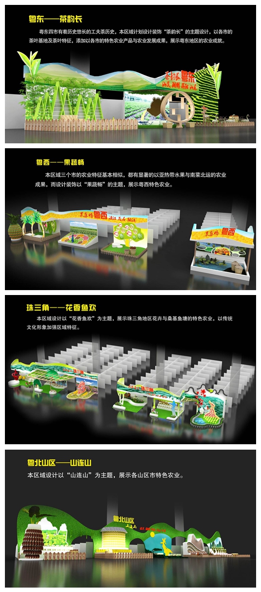省农业厅副厅长程萍:三是体现行业特色。首次以特色行业设置专业展区。设立7个专业展区。五谷丰登展区,集中展示展销省内各地优质名米、名薯和食用油等粮油农产品;花花世界展区,集中展示展销广东花草及各种观赏植物;瓜果飘香展区,集中展示展销省内各地优质名果、蔬菜(瓜);茗茶雅韵展区,集中展示展销省内各地优质名茶;独树一帜展区,集中展示展销广东省地理标志农产品;六畜兴旺展区,集中展示展销省内各地名猪、名鸡等畜禽产品以及肉蛋奶、饲料兽药名牌产品;精机荟萃展区,集中展示展销省内各地先进适用农业机械装备、设施和技术。