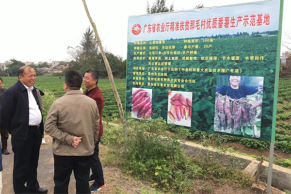 宋宗约副主任一行实地察看了那毛村”福平”薯种植基地,详细了解福平番薯的种植品种、规模、参与种植的贫困户收成情况和保价收购的具体帮扶举措,肯定了农业厅工作队利用帮扶单位行业职能优势来推进扶贫产业项目的理念方向。