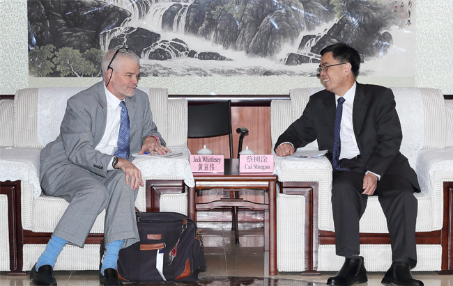 3月9日下午,广东省农业厅总畜牧兽医师蔡树淦会见了到访的美国驻华大使馆环境科技卫生参赞黄京伟(Jock Whittlesey)一行。蔡树淦总畜牧兽医师介绍了广东省农产品质量安全监管方面的相关情况,双方就推进农产品质量安全合作以及技术交流达成了共识。