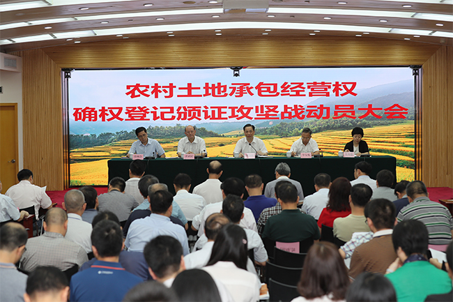 郑伟仪强调,全省土地确权工作已经到了攻坚克难的关键时刻,全省上下要团结一致,心往一处想、劲往一起使,以破釜沉舟、背水一战的决心,坚决打好农村土地确权攻坚战,确保今年底完成80%以上的目标,向省委省政府和全省农民群众交出满意答卷,以优异成绩迎接党的十九大胜利召开!