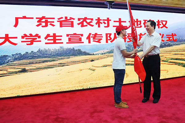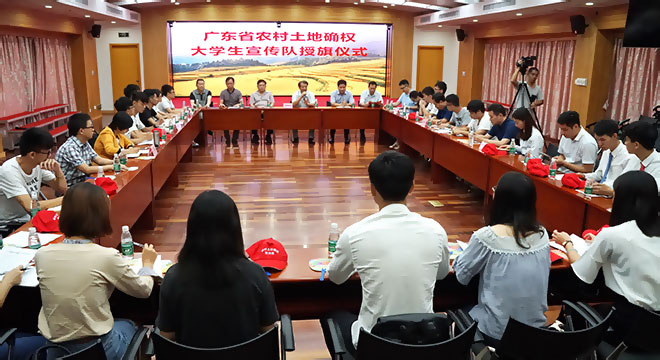 为再掀农村土地确权宣传热潮,加快推进全省农村土地确权工作,确保今年完成80%以上的确权任务,省农业厅与广东省5所高校共同组建由3000名大学生志愿者组成的200支大学生宣传队,利用暑假进村入户宣传土地确权政策。省农业厅对5所高校积极参与、支持农村土地确权工作表示热烈的欢迎和诚挚的感谢!希望同学们走进农村,联系农民,广泛宣传农村土地确权政策,让广大农民朋友积极参与确权工作。也希望同学们通过这次活动得到锻炼,积极为广东农村改革发展贡献力量!