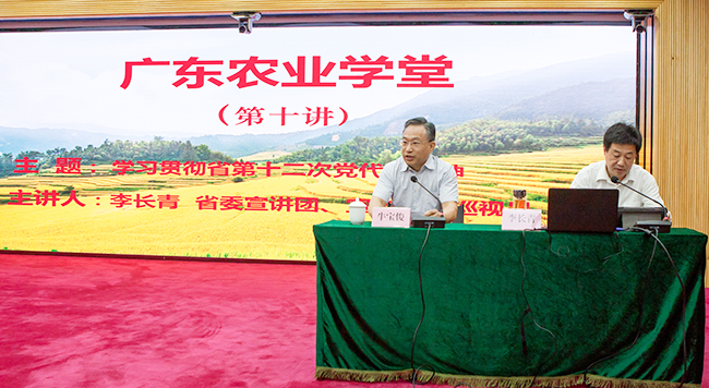 7月12日上午,省农业厅举办“广东农业学堂”第十讲—深入学习贯彻省第十二次党代会精神,邀请省委宣传部副巡视员李长青同志作辅导报告。在家厅领导、厅机关全体公务员、事业单位领导班子成员、厅大院内事业单位全体党员近200人参加报告会,会议由厅党组成员、副厅长牛宝俊同志主持。厅党组书记、厅长郑伟仪同志参会。