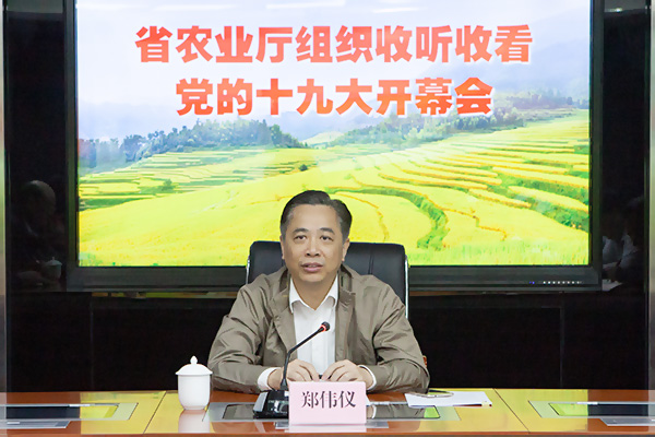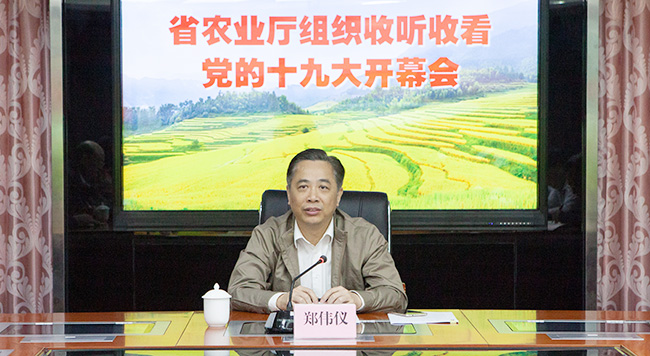 厅党组书记、厅长郑伟仪同志在收看了党的十九大开幕会后,立即部署安排全厅开展学习贯彻活动,强调要以学习贯彻党的十九大精神为动力,大力实施乡村振兴战略,深入推进我省农业供给侧结构性改革,加快建设广东特色农业现代化。一要迅速开展学习讨论,以党支部为单位组织党员干部原原本本地学习领会习近平总书记重要报告精神,迅速在全厅掀起学习贯彻党的十九大精神高潮,把思想和行动统一到中央的决策部署上来。二要围绕实施乡村振兴战略,组织党员干部按照习近平总书记关于实施乡村振兴战略的部署要求,逐字逐句对照检查、逐项逐条深入查找存在的短板差距,研究提出实施乡村振兴战略的意见建议。三要认真回顾总结今年各项重点工作,提出改进推进措施,以党的十九大报告精神为指引,认真研究谋划2018年全省农业农村经济工作思路和重点工作,深入推进农业供给侧结构性改革,努力打造新业态、扩展新模式、厚植新动能、再创新优势,以实际行动贯彻落实党的十九大精神。