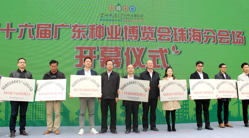 开幕式为“珠海现代农业科研生产示范核心基地”举行了授匾仪式。在珠海十大现代农业研发示范基地、珠海十大现代农业生产示范基地共20家基地的基础上,新增渔业智能化科研示范基地等8个合作共建基地。同时为充分发挥示范基地的研发、推广和带动作用,突显示范基地的核心作用,依据企业的研发优势、品牌效应、市场竞争优势等,选定了广东香意浓农业科技有限公司等十家企业作为“珠海现代农业科研生产示范核心基地”。