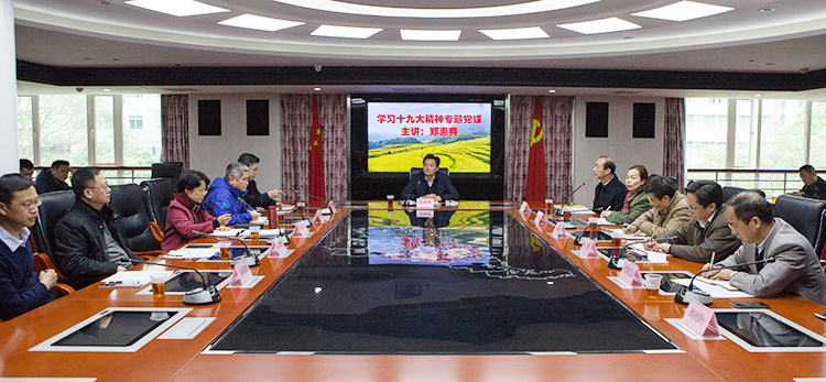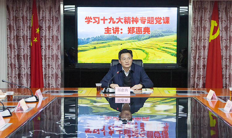 2018年1月9日下午,省农业厅畜牧兽医和农产品加工系统党建协作组举行党课活动,省农业厅副厅长、省畜牧兽医局局长郑惠典以《深入学习贯彻党的十九大精神 推进新时代畜牧兽医和农产品加工工作》为题,对其分管的省畜牧兽医部门、农产品加工办的党员干部讲授学习贯彻党的十九大精神专题党课。党课结束后,郑惠典同志还就党组民主生活会听取了分管单位负责人意见。