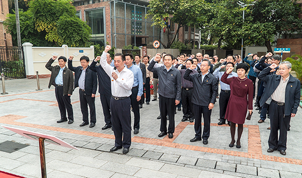 3月16日,省农业厅组织开展“瞻仰中共三大会址 重温入党誓词”主题党日活动。厅党组成员、党支部(党委)书记等60余人参观中共三大会址和广州农民运动讲习所旧址。厅党组书记、厅长郑伟仪同志带领大家在中共三大会址前重温入党誓词。