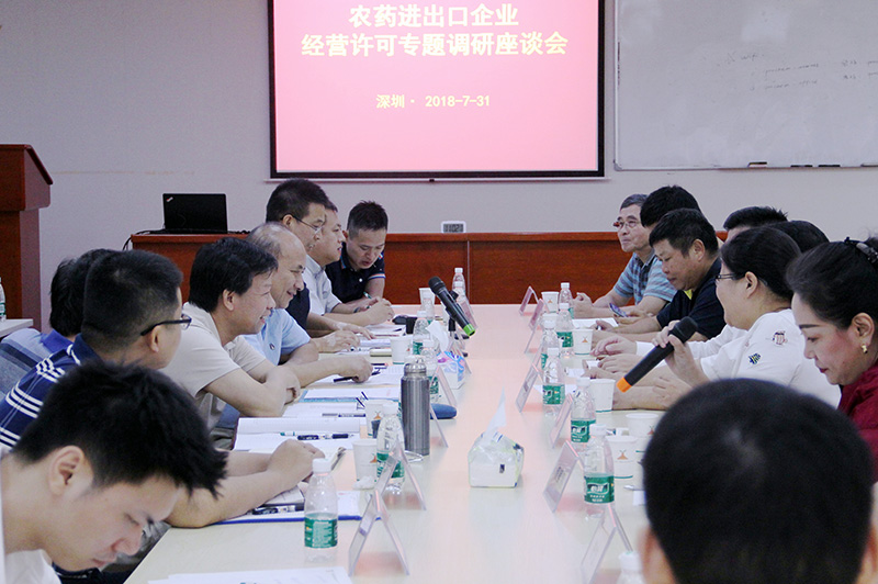农业农村部调研组召集进出口贸易企业开展座谈,解读国家农药管理有关政策,就企业经营过程中遇到的具体问题进行交流。随后走访了深圳市经济贸易和信息化委员会、深圳诺普信农化股份有限公司。