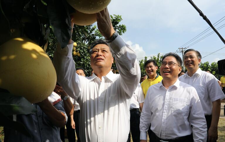 启动仪式后,马兴瑞前往位于梅县金柚产业园的岭南丰收馆、众信水果专业合作社考察。