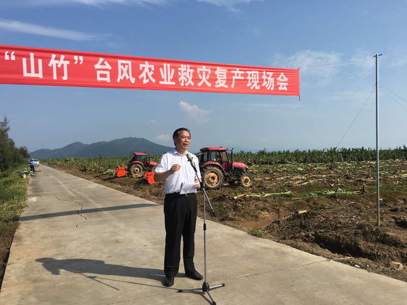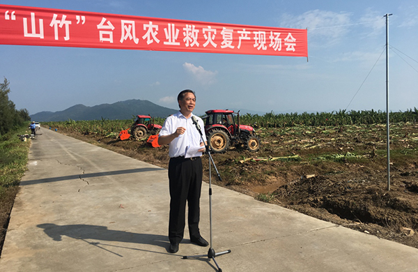 9月20日,广东省农业厅在江门台山市召开全省抗御“山竹”台风农业救灾复产现场会。省农业厅厅长郑伟仪在会议中强调,要发挥现代农业装备和科技服务团在抗灾救灾复产中的重要作用,奋力夺取受灾地区农业救灾复产全面胜利。