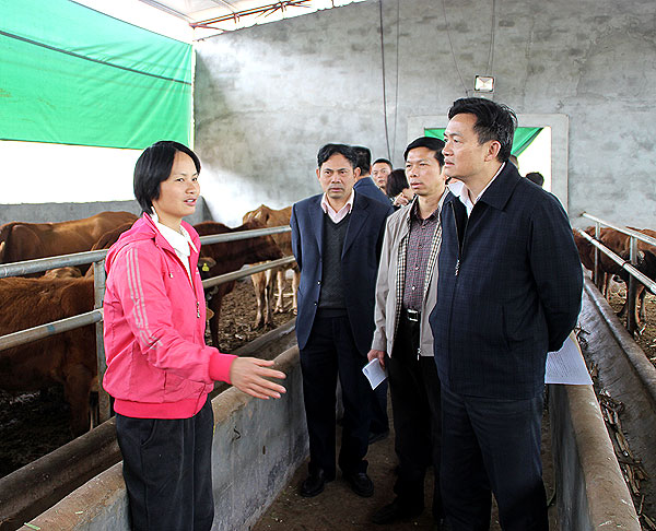 2014年12月26日,广东省农业厅党组成员、副厅长、省畜牧兽医局局长郑惠典同志率领厅办公室、人事处以及省畜牧兽医局有关人员到省农业厅挂钩扶贫点——东源县石岗村开展调研督导,与驻村工作组及石岗村两委干部进行了亲切座谈,深入贫困户家中了解山地鸡养殖情况,参观考察了红群种养专业合作社肉牛养殖场。