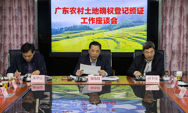 4月13日下午,广东省农业厅郑伟仪厅长主持召开农村土地承包经营权确权登记颁证工作座谈会,传达学习中央和省有关文件精神,听取各地确权登记颁证工作进展情况汇报,研究谋划下一阶段确权登记颁证工作。各地级以上市(顺德区)农业局局长及经管科(处)室负责同志、有关厅领导及相关业务处室负责同志参加了会议。